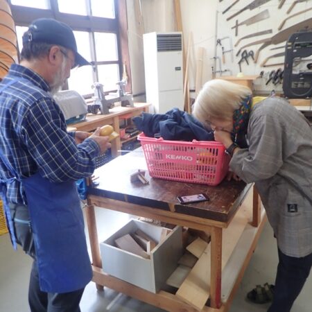 明日の天気予報により、ホールの木のおもちゃひろばのおもちゃを元の場所に片づける作業を行いました。