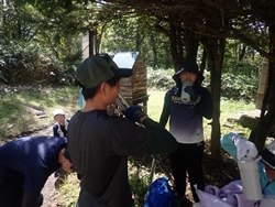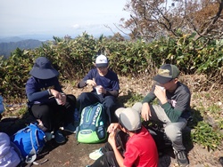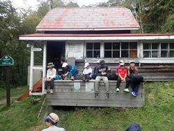まずは、平らな道をのんびり歩き白鳥ヒュッテへ。一休みしてから、室蘭岳で一番辛いガンバリ岩を一生懸命登りました。途中、ロープがある岩場もありましたが、みんなで歩調を合わせて、難なくクリア!頂上に近づくにつれて、あたりはダケカンバ林への植生が変わります。フッと後ろを振り返ると室蘭の街並みや太平洋の大パノラマ!みんなから歓声があがりました。山頂へは予定通りに12時30分につき、ミッションのお湯を沸かしておやつラーメンやココアを飲みました。30分ほど昼食や写真タイムを過ごして下山。下山は2チームに分かれてあっという間に白鳥ヒュッテへ。管理人さんに中を見学させていただき、振り返りをして登山口までみんな無事に下山することができました。