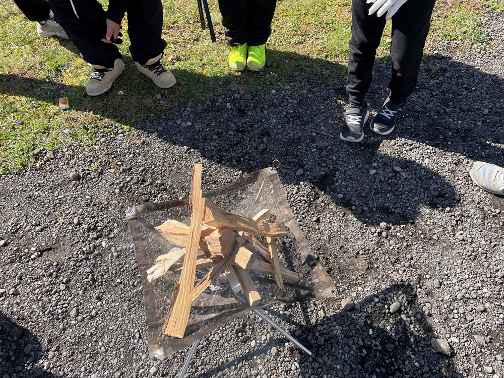 今日は、雨も上がり予定通りのたき火チャレンジを行いました。