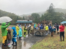 今日は、森のようちえん、ながぐつレンジャー、山の学校の子育て支援プログラムが合同で行う子育てフェス「森に感謝の日」が行われました!あいにくの雨となりましたが、111名の皆さんにお集まりいただきました!