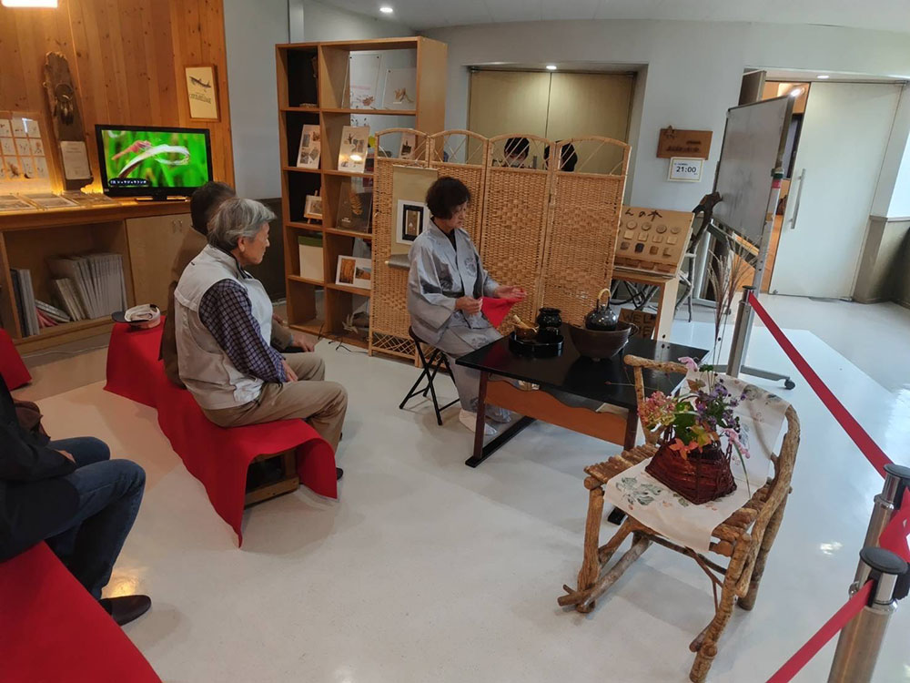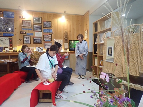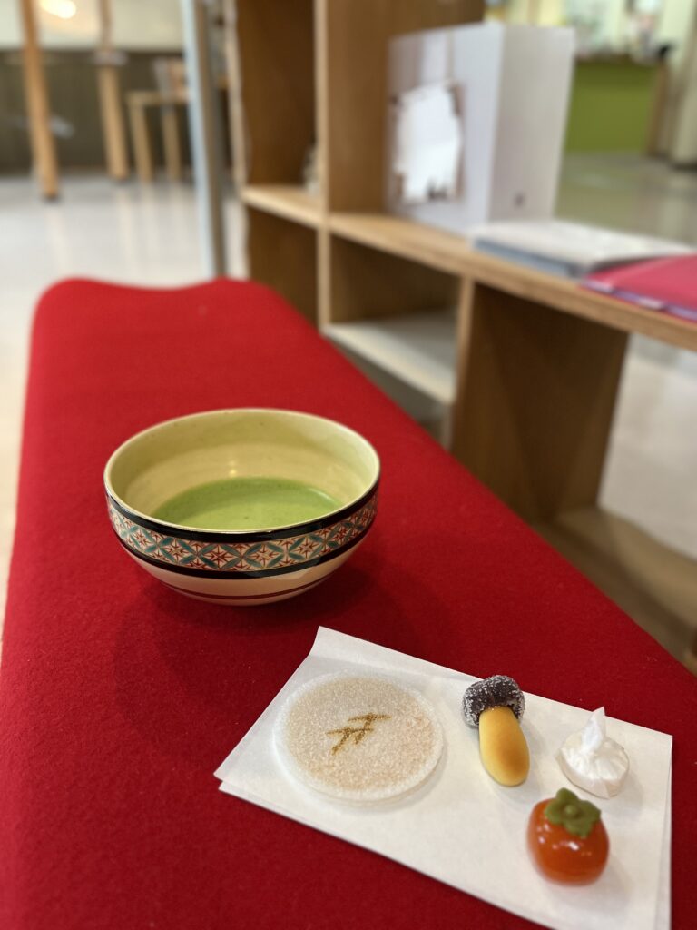 あいにくの雨となり、秋の野点は館内で行いました。花瓶に飾られた秋の野の花を愛で、窓から見える紅葉の始まりを愛でながら、美味しいお菓子とお抹茶でゆったりとした時間を過ごしました。