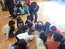 板はやすりがけをしてから、マジックで絵を描き、釘を打って組み立てました。リーダーとなった高学年の子どもたちは、下級生をサポートしたり指示を出したりしながら、班をまとめてくれました。