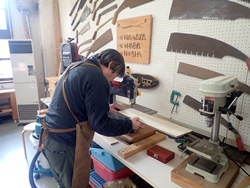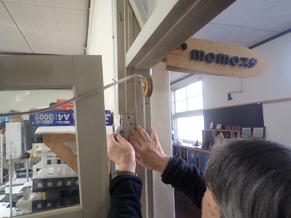 今日は、作品づくりの鍋敷きの他、モモスタの閉まりが悪くなっていた戸の修理をおこなってくれました。