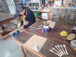 今日は、スプーンと鍋敷き、クリスマスツリーの作成を行っていました。