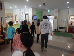 初日は、施設全体の説明を行った後、亀田記念公園で実施している「かめっCoくらぶ」に参加しました。実際に参加者と交流しながら、活動の進め方や子どもたちと関わる際のポイント、安全面で気を付けることなどを、体験を通して学んでもらいました。