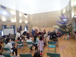 午後からのコンサートでは、第一部は、アプルナスのみなさんによるフォルクローレの演奏がありました。聞きなれない南米の楽器ですが、「コンドルは飛んでいく」や「ジングルベル」などよく聞かれる曲もあり、最後はみんなで踊ってたのしみました。その後、コーザンで活動する森ぶっくチームのみなさんによる読み聞かせも3冊あり、子どもたちはみんなお話に耳を傾けてくれました。