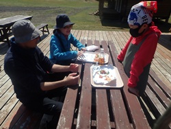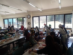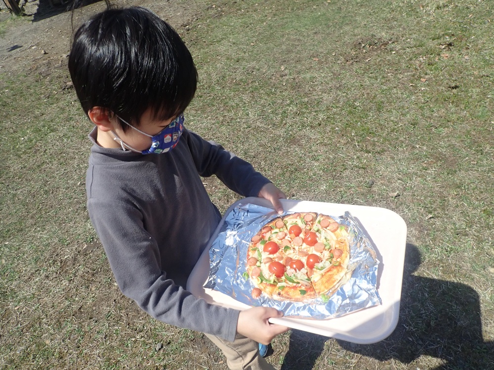 青空の下、春の風を感じながら、できたてのピザを味わっていただきました。