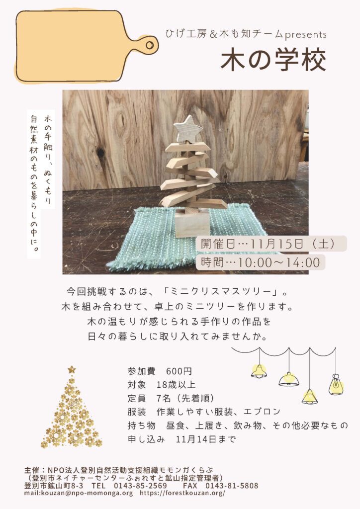 持ち物 木工ができる服装、エプロン、飲み物、昼食、その他必要なもの
