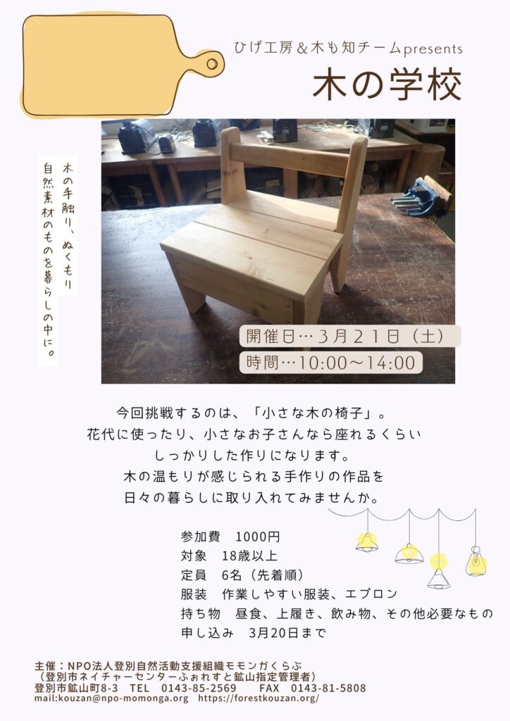 内容 小さな木の椅子を作ります。