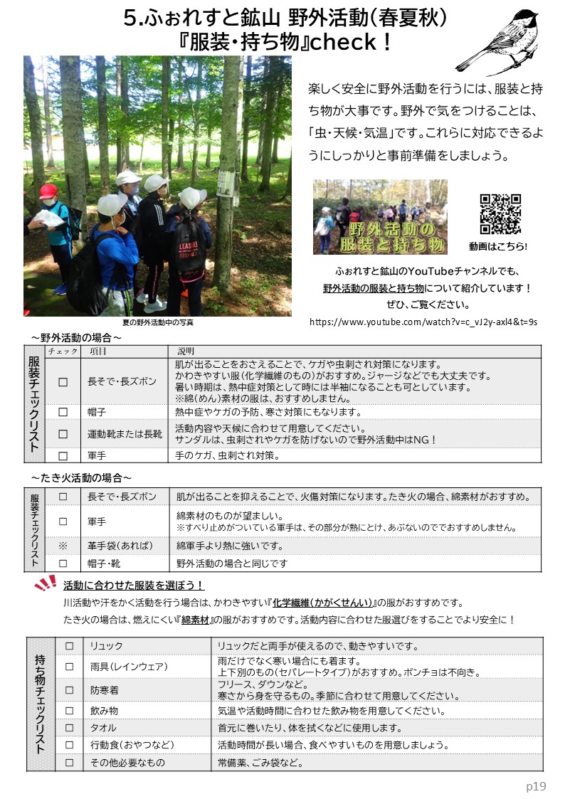 【持ち物】 屋外で活動できる服装、リュック、帽子、着替え、飲み物、昼食、雨具や長靴、軍手など